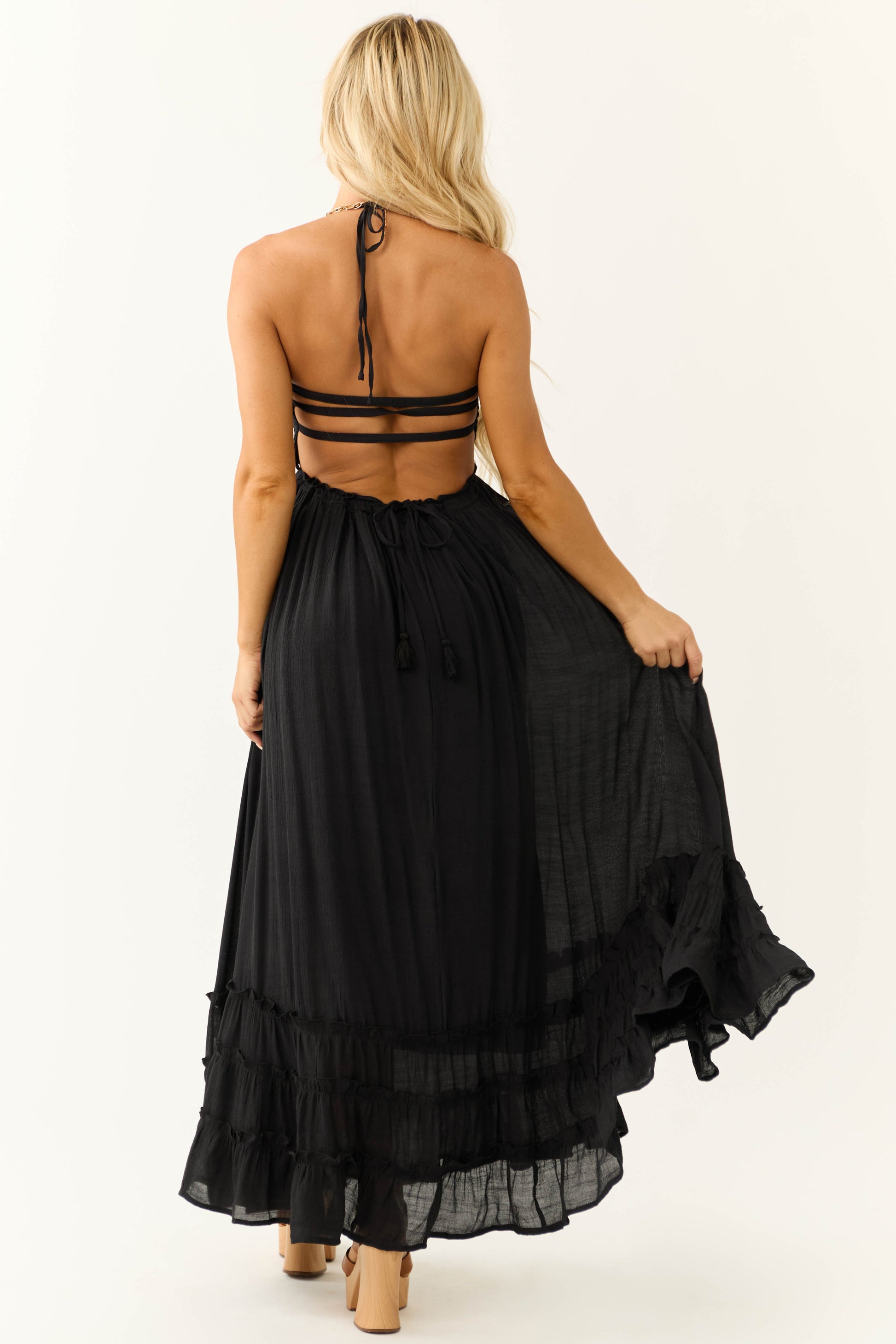 Black Ruffle Bottom Sleeveless Maxi Dress